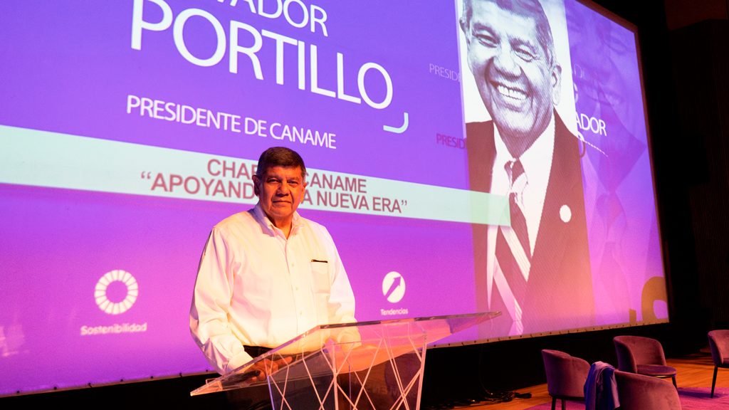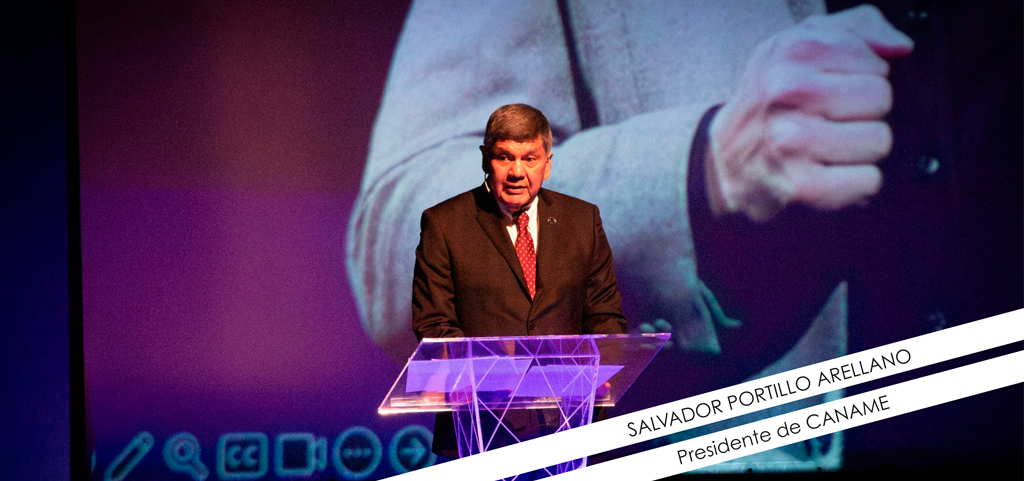 El ingeniero Salvador Portillo, presidente de la Cámara Nacional de Manufacturas Eléctricas (CANAME), inició su charla agradeciendo a los asistentes y subrayando la relevancia de la industria de manufacturas eléctricas en la economía mexicana.