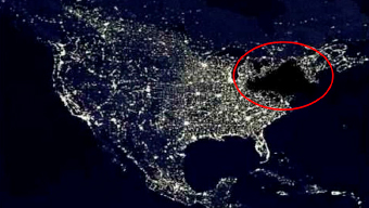 Figura 1. Vista satelital del impacto del apagón masivo en el noreste de Estados Unidos y Canadá el 14 de agosto de 2003. Fuente: https://nmgroup.com/en/resources/news/the-north-east-blackout-of-2003.