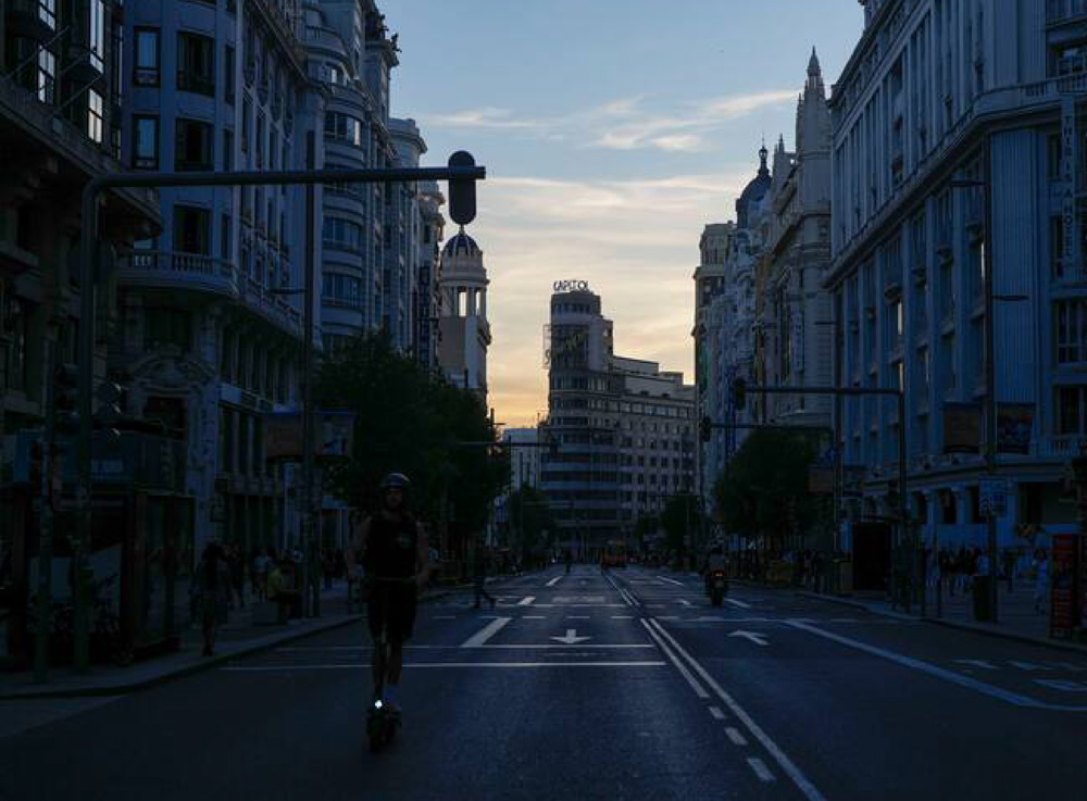 Figura 3. Fotografía de la Gran Vía sin luz el 28 de abril de 2025 durante el apagón masivo del sistema eléctrico en Madrid / Borja Sánchez-Trillo (EFE). Fuente: https://cadenaser.com/nacional/2025/04/29/el-gobierno-de-francia-marca-distancias-con-espana-y-portugal-por-el-apagon-es-muy-improbable-que-suceda-aqui-cadena-ser/.